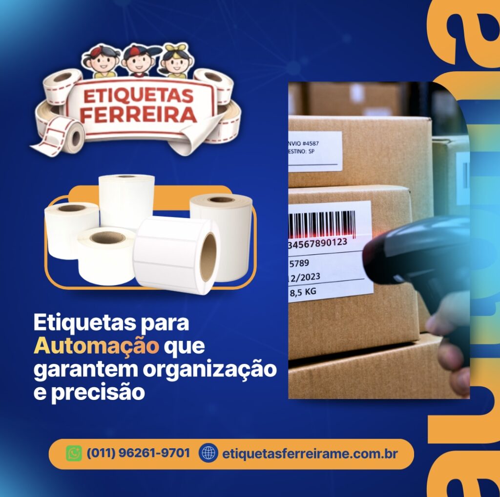 A Etiquetas Ferreira oferece etiquetas para automação de alta qualidade, ideais para estoque, logística e identificação de produtos. Soluções em papel couché, BOPP, vinil e poliéster, com excelente fixação e nitidez de impressão.