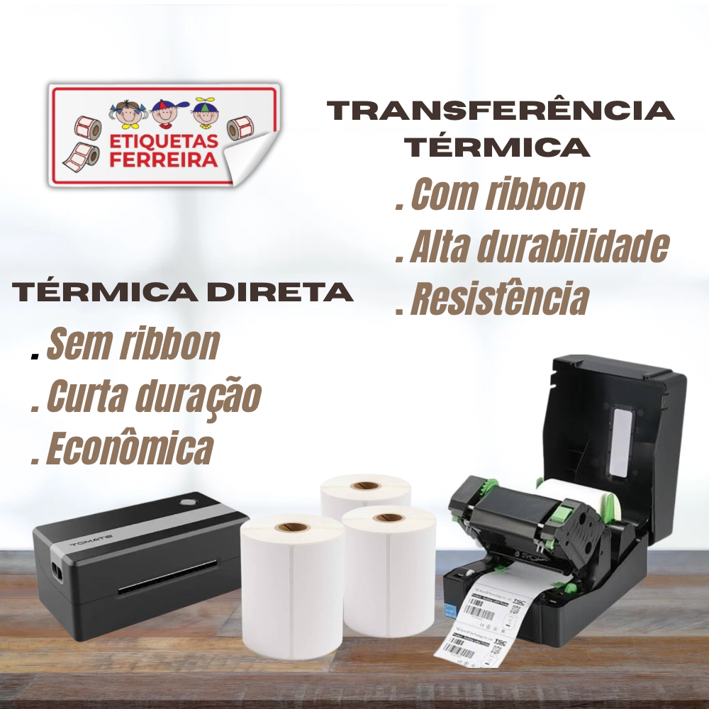 Se você precisa de impressão durável e profissional, a melhor escolha é a etiqueta com transfêrencia térmica (uso de ribbon).
