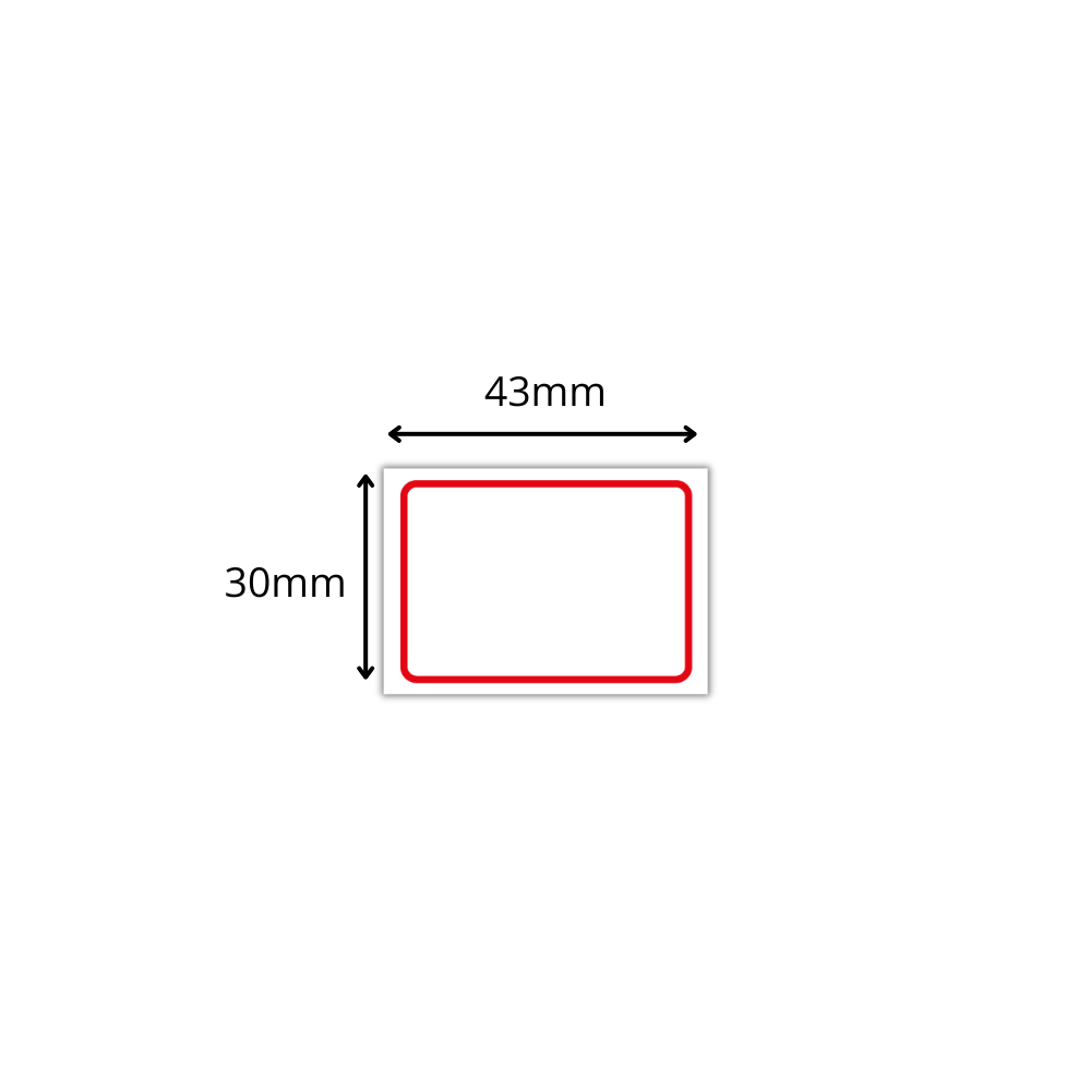 Dimensões da etiqueta: 43mm (largura) x 30mm (altura)